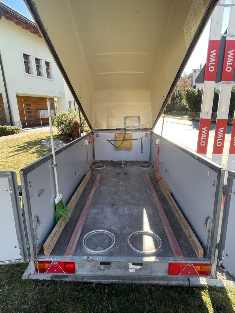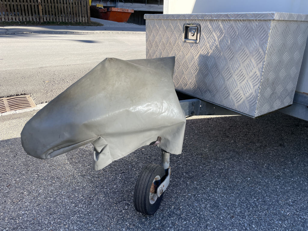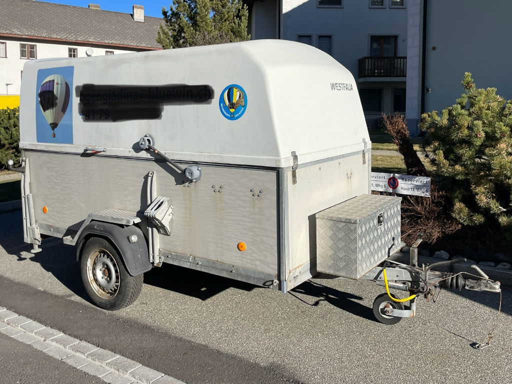 Westfalia 3.0m single axle trailer, built 2000, with fan mount and aluminium box. Used but in good condition.