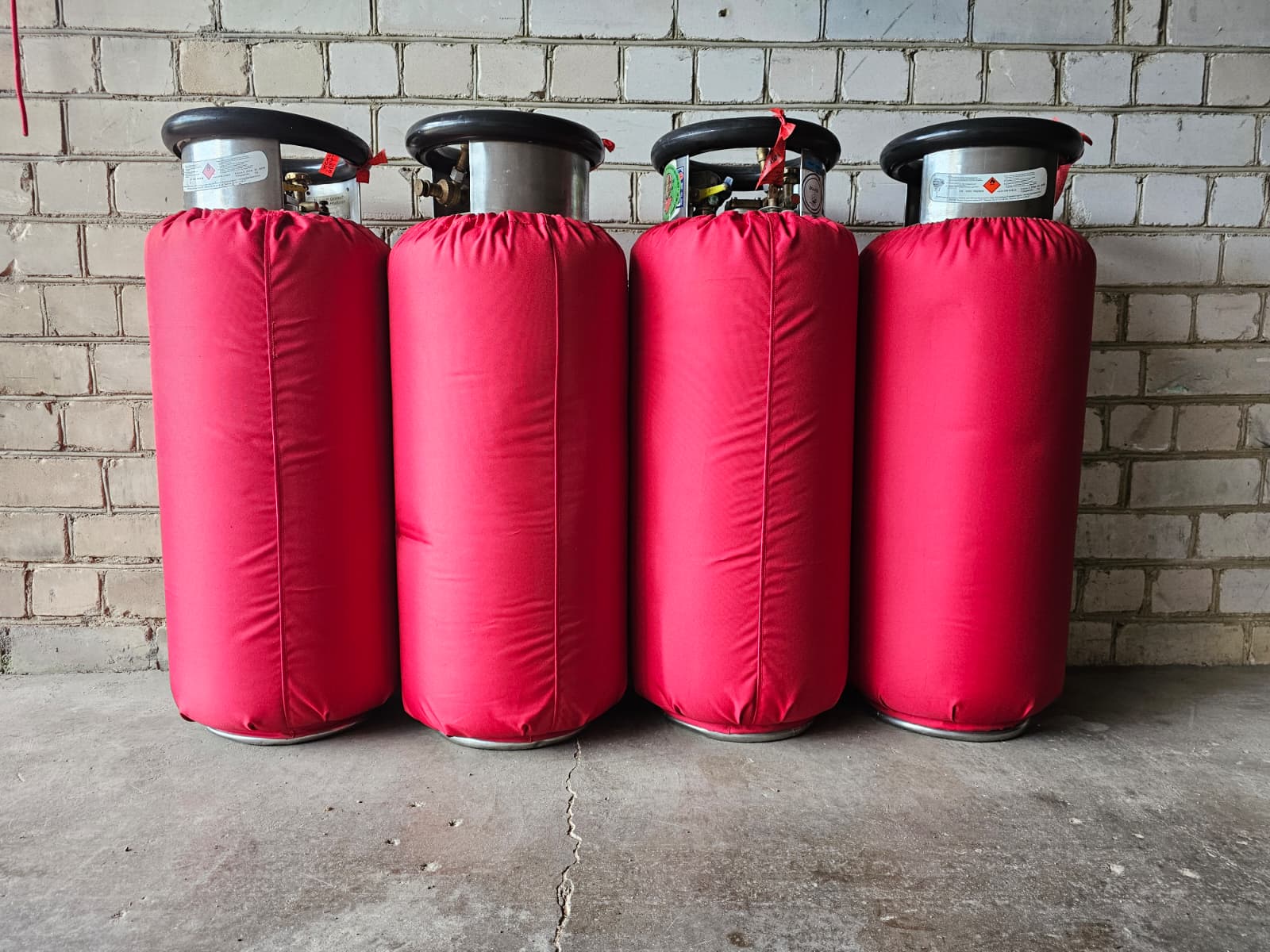 4x Schroeder VA50 cylinder, built 1991 (1x) / 1992 (3x). Usable volume 40 liter. Slave, quick shut off valve, TEMA fitting, new red cover. Reassessment (Neubewertung) done in 05/2013, PRV/PPT/INT valid until 08/2034.