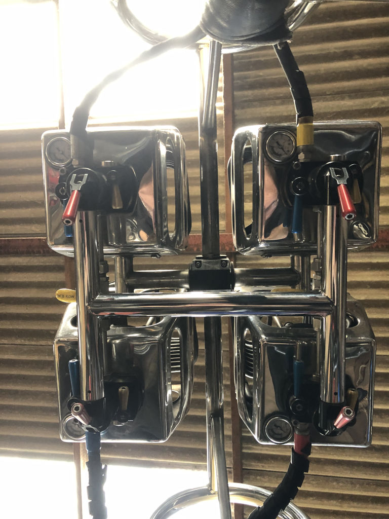 Cameron Shadow quadruple burner (CB2256), built 2005, 615 flights/hrs. Liquid pilot lights, REGO fittings, hoses dated 01/2022. Comes with gimbal block, frame not included.