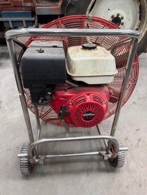 11.0 HP inflation fan, stainless steel flip wheel frame, wooden propeller, in good condition.