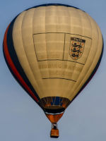 G-BZIC, Lindstrand LBL Sun special shape, built 2000, volume 105.000 ft3. Logo cut in and can stay. Twin velcro deflation panels (1 rip line), dump vent, turning vents. Velcro slots in blue rays. In very good condition, used with care. ARC valid until 11/2022.
