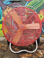 5.5 HP inflation fan, stainless steel flip wheel frame, 3-blade wooden propeller. Recently serviced: refurbished carburator, new propeller, new wheels.